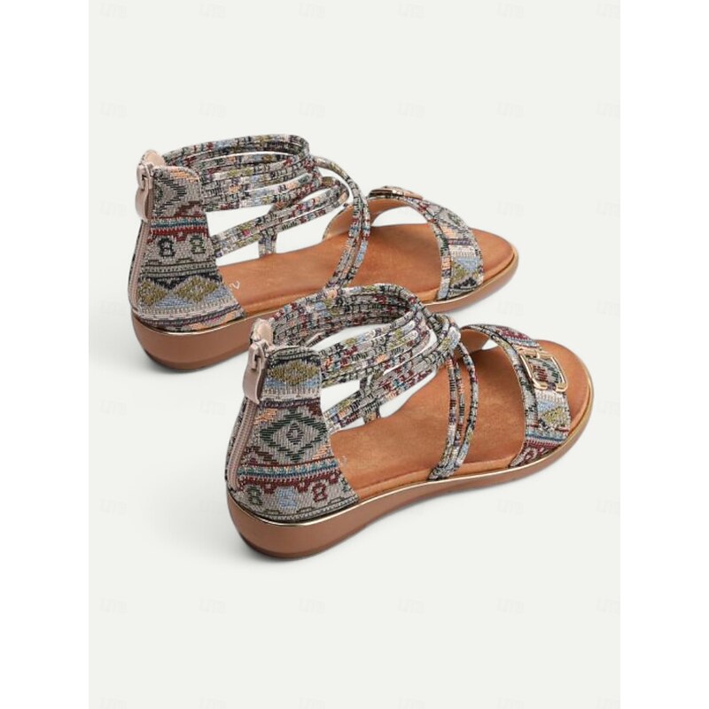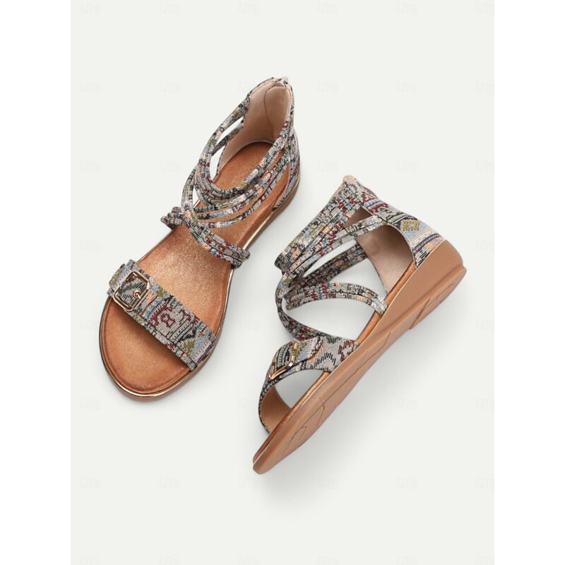 Women's Bohemian Strappy Flat Sandals – Ethnic Print Ankle Wrap Gladiator Sandals with Buckle for Summer, Beach & Casual Outfits 17