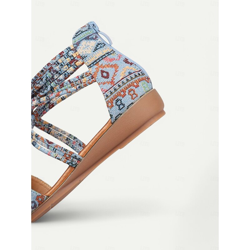 Women's Bohemian Strappy Flat Sandals – Ethnic Print Ankle Wrap Gladiator Sandals with Buckle for Summer, Beach & Casual Outfits 10