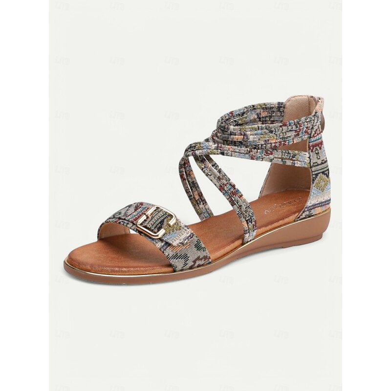 Women's Bohemian Strappy Flat Sandals – Ethnic Print Ankle Wrap Gladiator Sandals with Buckle for Summer, Beach & Casual Outfits 1