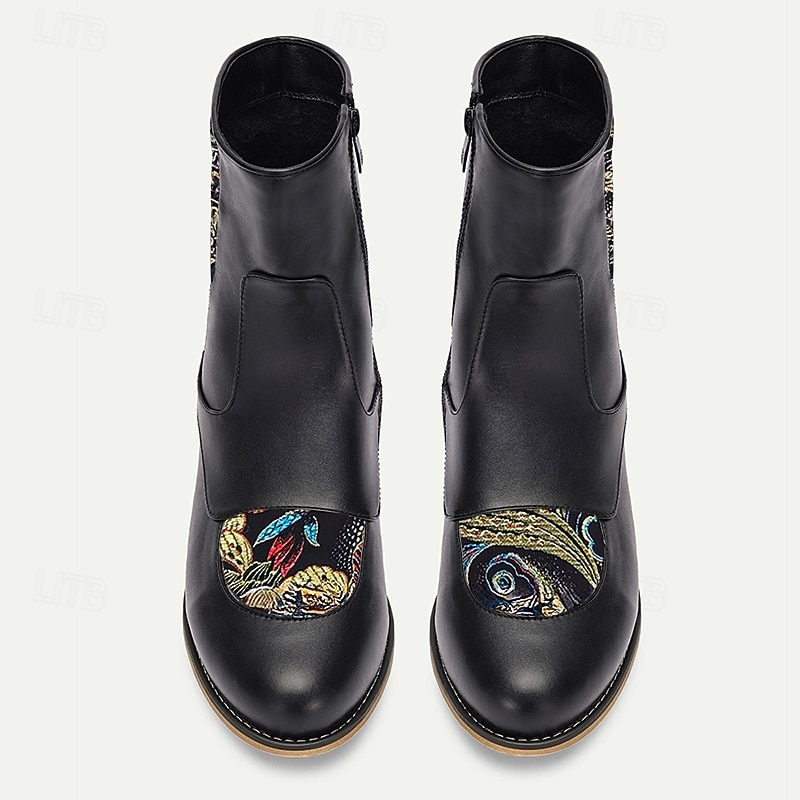 Men's Vintage Elegance Black Embroidered Jacquard Fabric and Faux Leather Ankle Boots for Formal and Casual Wear 1