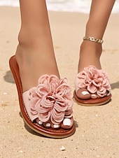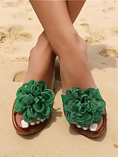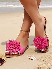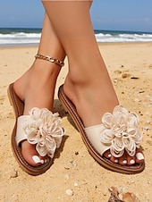 popular ! Women's Floral Slide Sandals – Boho Style Flat Beach Shoes with 3D Flower Design for Summer Vacation & Casual Wear