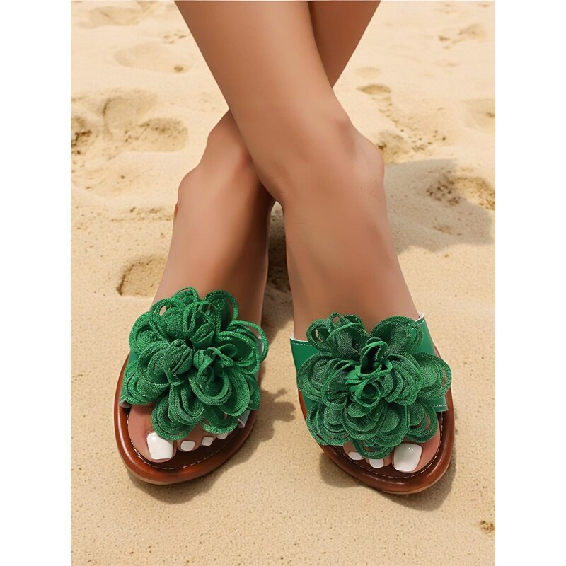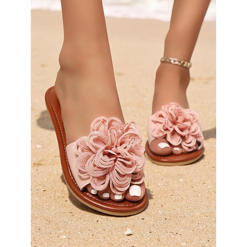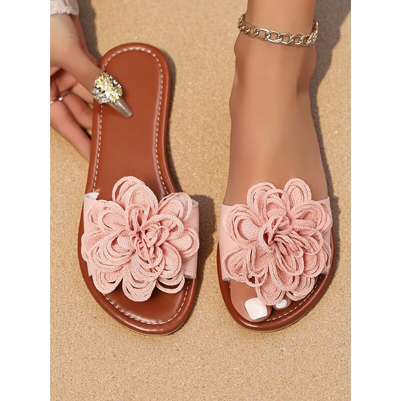 Women's Floral Slide Sandals – Boho Style Flat Beach Shoes with 3D Flower Design for Summer Vacation & Casual Wear 1