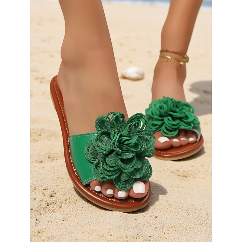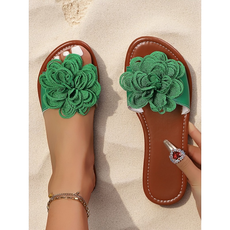 Women's Floral Slide Sandals – Boho Style Flat Beach Shoes with 3D Flower Design for Summer Vacation & Casual Wear 14
