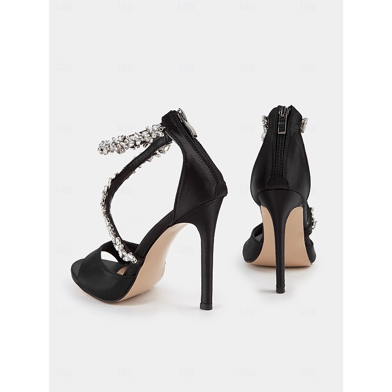 Women's Rhinestone-Embellished Stiletto Heels – Elegant Open-Toe Wedding Sandals for Brides and Formal Events 10