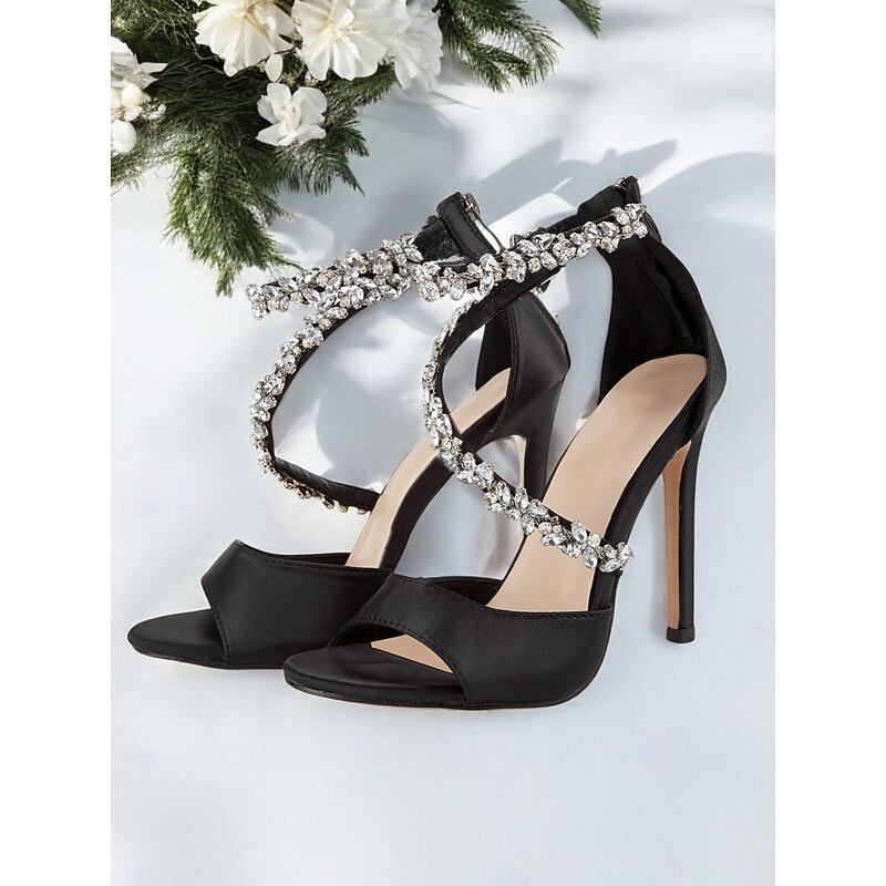 Women's Rhinestone-Embellished Stiletto Heels – Elegant Open-Toe Wedding Sandals for Brides and Formal Events 11