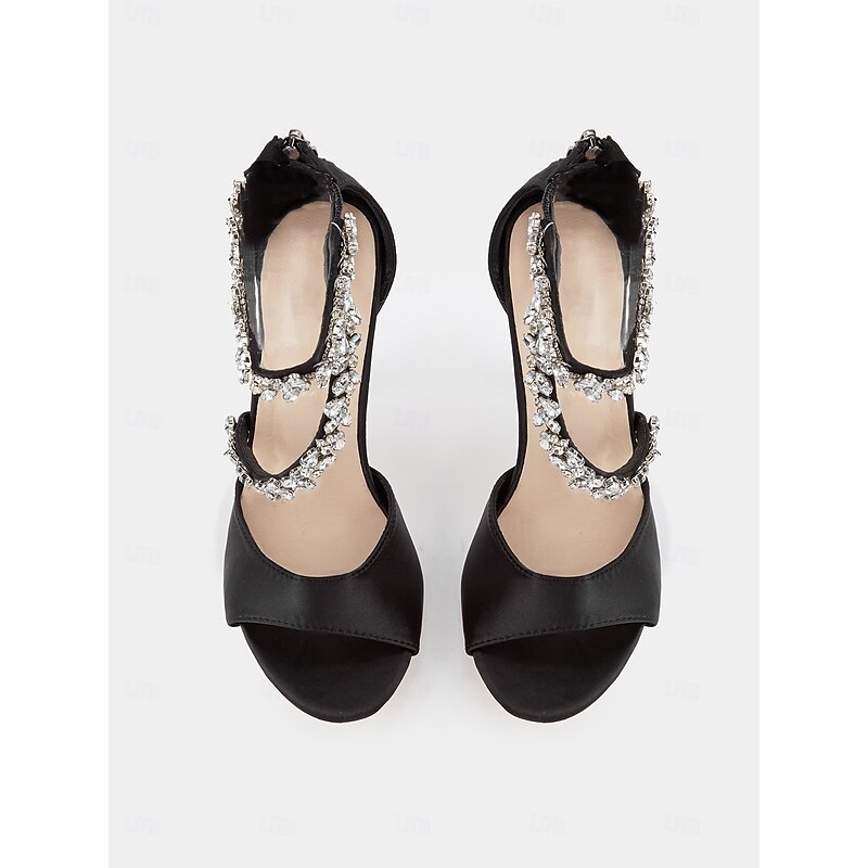 Highlights 1. Luxurious satin upper material 2. Sparkling rhinestone embellishment 3. Elegant open toe design 4. long-lasting rubber outsole for long-lasting wear