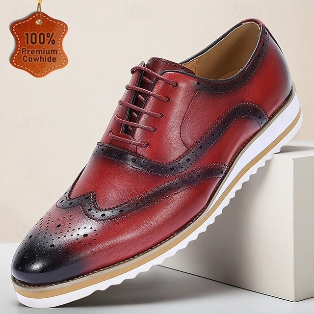 popular ! Men's Genuine Leather Red Wingtip Brogue Oxford Shoes – traditional Lace-Up Dress Footwear for Office, Parties and Formal Events