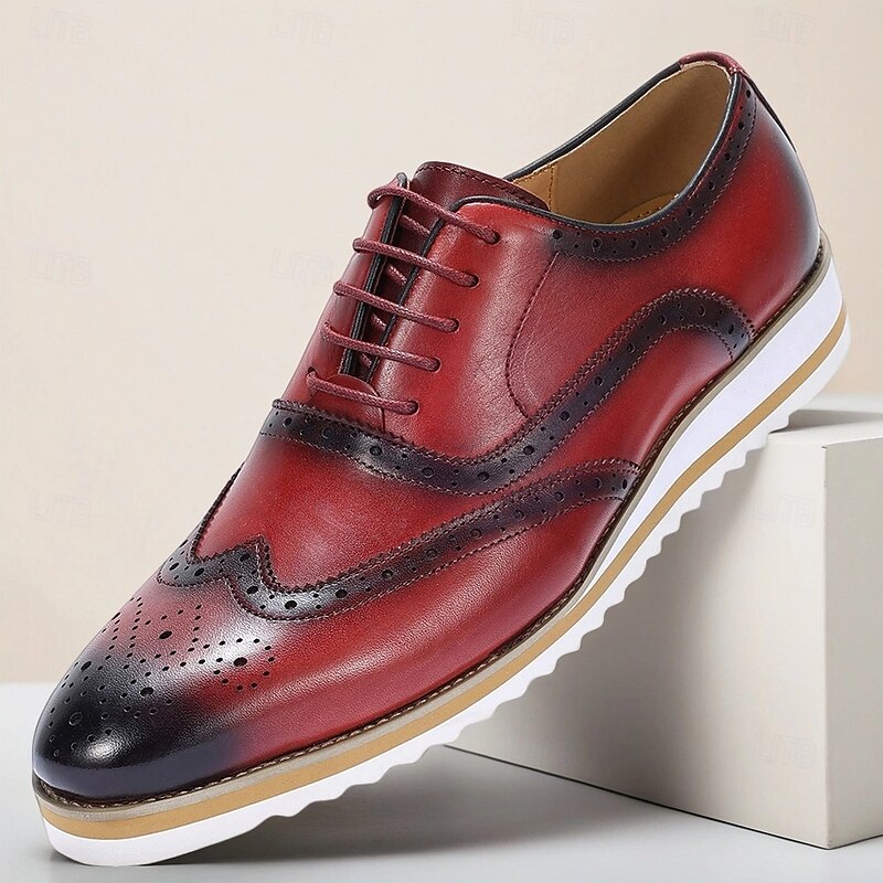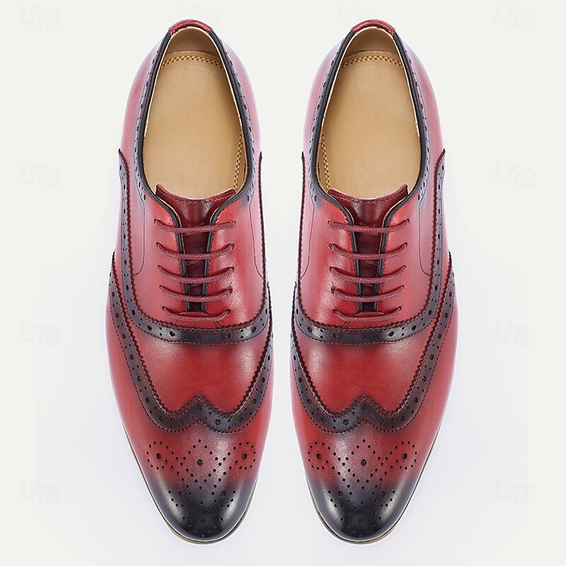 Men's Genuine Leather Red Wingtip Brogue Oxford Shoes – Classic Lace-Up Dress Footwear for Office, Parties and Formal Events 1