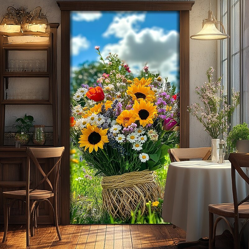 Why Choose Landscape Door Decorations Door Covers Bunch of Flowers Door Tapestry Door Curtain Decoration Backdrop Indoor/Outdoor Door Banner for Front Door Farmhouse?