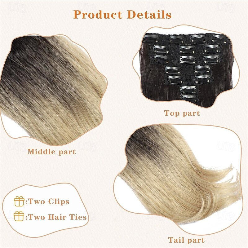 $26.99 - Clip in Hair Extensions 6PCS 20 Inch - Black to Bleach Blonde Ombre Synthetic Hair with Seamless Removable Clips for Women Natural Look for Daily & Party Use 2025. Shop for cheap Clip in Extensions online? Buy at lightinthebox.com on sale today!