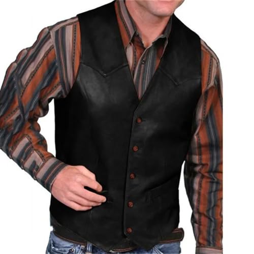 Leather Vest For Men Motorcycle Steampunk Waistcoat Western Cowboy Party Dress Gilet 5