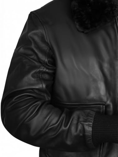 More information about Mens G1 Aviator Pilot Removable Fur Collar Bomber Leather Jacket Black/Brown-Real/Faux