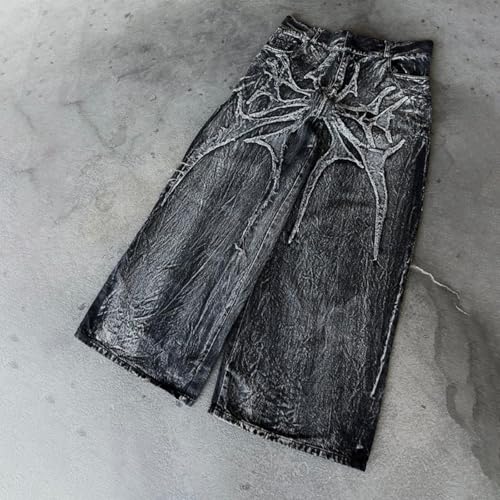 • Multi functional design: dark design, hip-hop patchwork jeans, Y2K work pants, loose retro traditional design. The high waisted design features a front zipper and button closure, adding practicality.