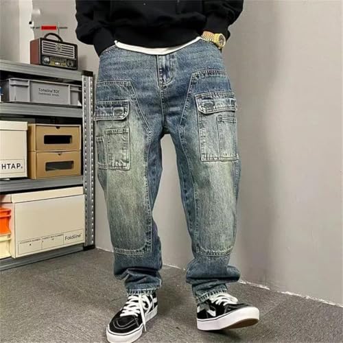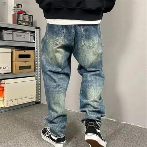 popular ! Men Cross Vintage Denim Trousers Loose Straight Embroidery Jeans