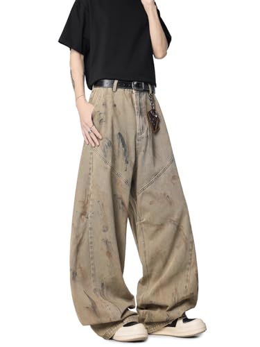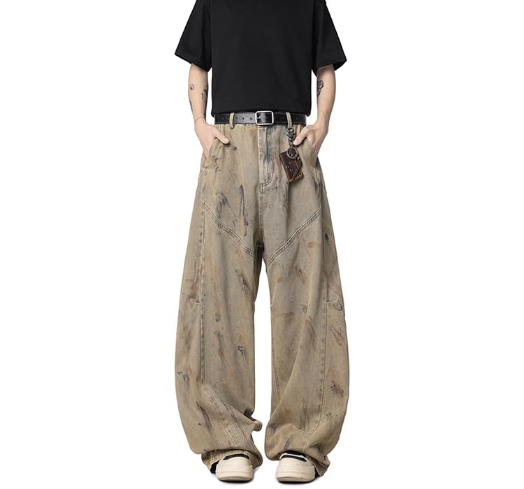 Men's Jeans Summer American Wide Leg Patchwork Denim Long Pants for Men 6