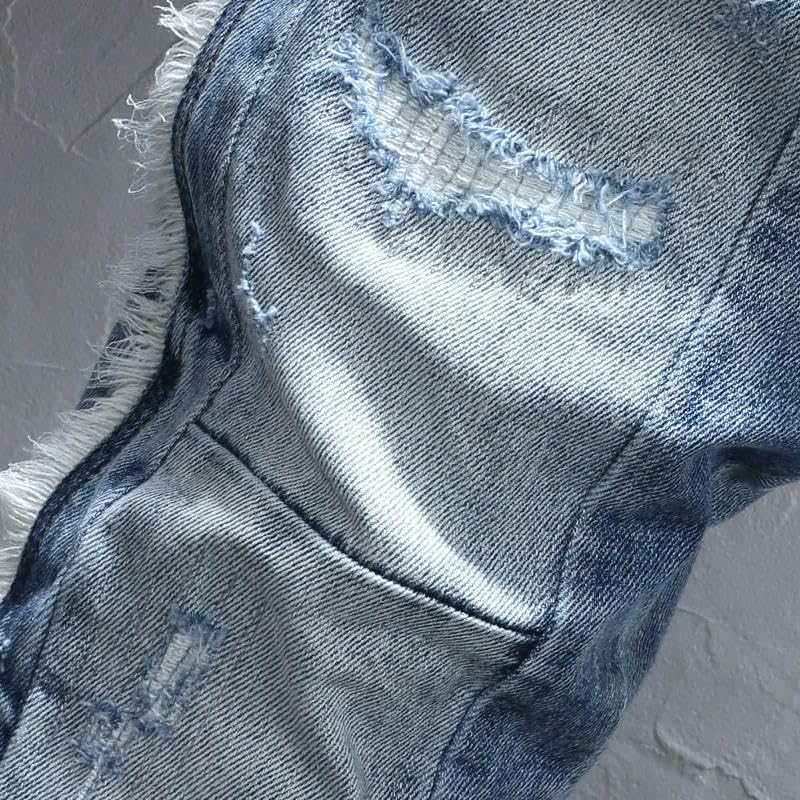 More information about Street Men Jeans Retro Light Blue Elastic Stretch Skinny Ripped Jeans Mens Spliced Designer Hip Hop Denim Pants