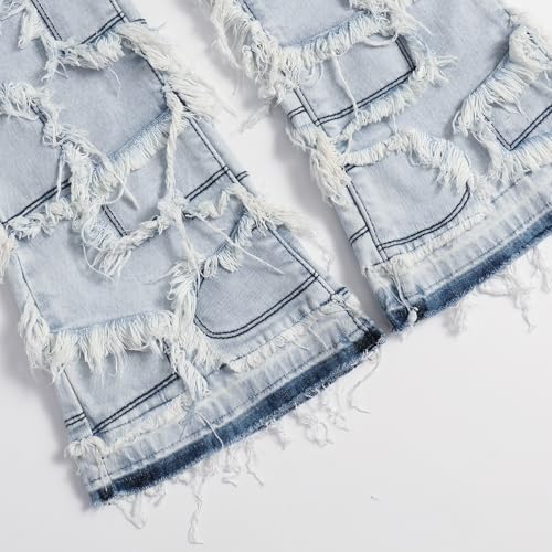 Men's Hip Hop Denim Ripped Dilapidated Mid Rise Stretch Straight Leg Jeans with Pockets 6