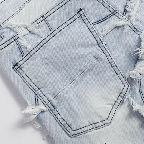 Men's Hip Hop Denim Ripped Dilapidated Mid Rise Stretch Straight Leg Jeans with Pockets 5