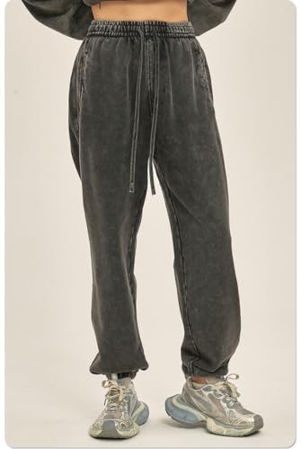 • Fashion Design: Men's acid washed sports pants with adjustable drawstring elastic waistband, loose fit, 2 side pockets and 1 back pocket for storing phones, wallets, and keys.