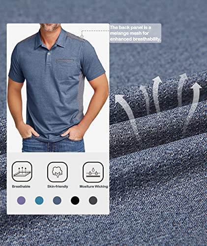 Little Beauty 3 Pack Men's Polo Golf Shirts with Pocket Short Sleeve Collared Shirts Moisture Wicking Summer Casual T-Shirts 5