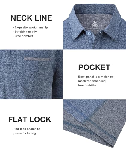 Little Beauty 3 Pack Men's Polo Golf Shirts with Pocket Short Sleeve Collared Shirts Moisture Wicking Summer Casual T-Shirts 7