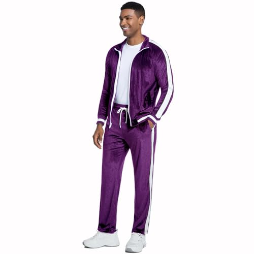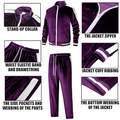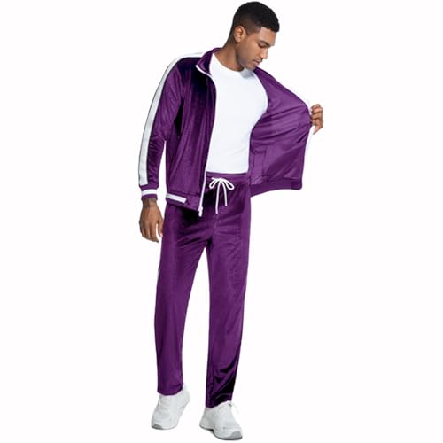 ANOTWENER Men's 2 Piece Tracksuits Velour Sweatsuits Athletic Fit Velvet Outfit Jogging Full Zip Jacket Pants Set 7