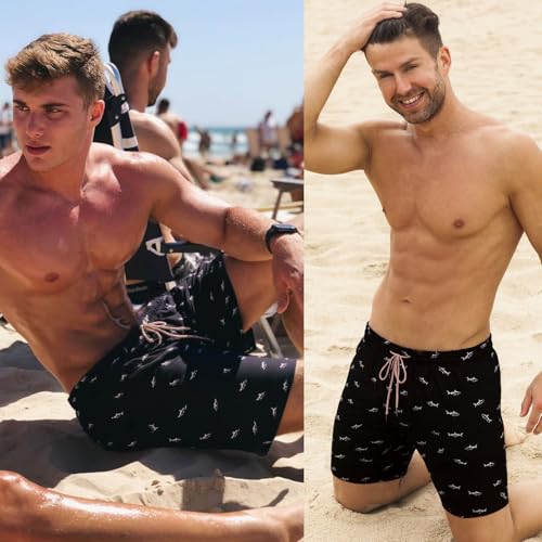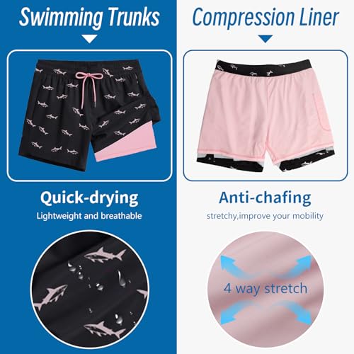 Men's Swim Trunks with Compression Liner 5" Quick-Dry Beach Shorts Anti-Chafing Board Shorts with Zipper Pockets 6
