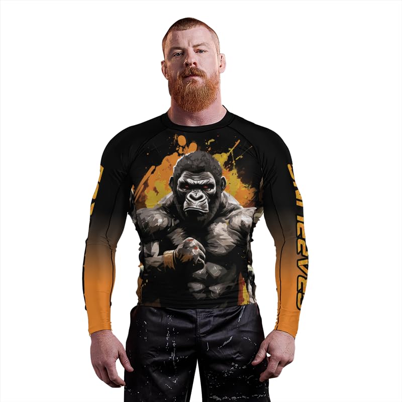 FORMONIES Gorilla Men's Sports Compression Tops Jiu Jitsu Long Sleeve Rash Guard for MMA BJJ Fight Wear Shirt 1