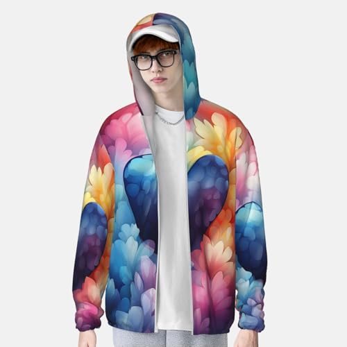 Fabric type: 100% PolyesterClosure type: ZipperNeck style: Hooded NeckSleeve type: Long SleeveBreathable & Quick-Dry: Our summer long sleeve Blue Love Heart sun protection shirts are made from quick-dry and breathable elastic material that dries quickly. It breathes easily to vent excess heat and moisture to keep you cool, dry, and moving comfortably.UV Protection: Our Blue Love Heart long sleeve sun shirts features cutting-edge UPF 50+ technology, effectively blocking UV rays to ensure robust sun protection during your outdoor adventures. Designed with a hood to protect the neck, and other sun-exposed areas. Ideal for extended outdoor activitiesLightweight & Comfort: The ultralight Blue Love Heart fishing shirt is designed for a natural fit, the ultralight fabric and ergonomic flat-lock seam construction reduce chafing. Our fishing shirts moves effortlessly with your body, ensuring all-day comfort.Designed for Outdoor Sports: Whether you're fishing, hiking, running, swimming, rash guard, or simply enjoying the beauty of nature, our sunproof hoodie is the perfect companion for all your activities; Seamlessly blending style with protection, it meets your outdoor adventure needs with perfection.Versatile Style: This men's sun protection shirt has a simple and elegant design, which is not only suitable for matching with swimsuits and sportswear, but also can match up with a variety of pants and shoes. Now you can choose a special sun protection clothing for your family, friends or yourself to protect the skin and show your fashion sense at the same time. Perfect for everyday use. top-grade materials and excellent craftsmanship ensure long-lasting durability.