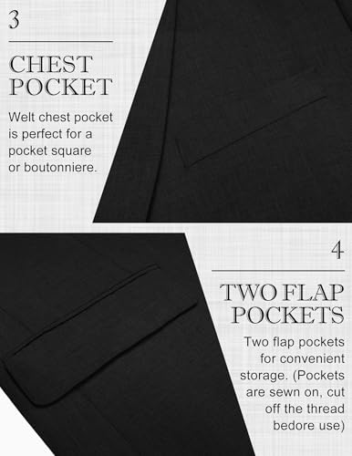 • FUNCTIONAL POCKETS - These mens sport coats feature two flap pockets and two inside pockets for accessible storage, one welt pocket at chest height for your pocket square.