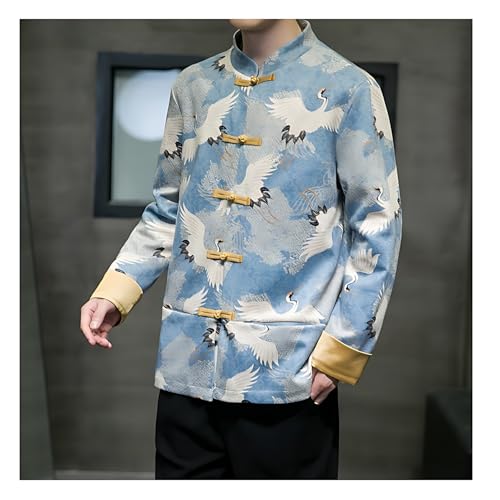 popular ! Men's Tang Suit Jacket Spring and Autumn Long Sleeve Chinese Traditional Vintage Print Tai Chi Kung Fu Coat.
