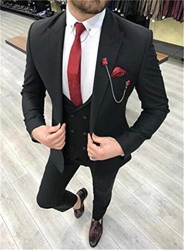 • 【3 Piece Suits Features】: This 3 piece suits slim fit suit blazer vest pants prom suits with one button. Jacket: single breasted one button closure/ peak lapel/ 3 practical inner pockets/ 2 front flap pockets/ 1 Real handkerchief pocket; Pants: flat front/ Invisible zipper/ 2 Real back pockets; Vest:Double Breasted 4 buttons/ v-neck vest.A elementary and elegant design showcases male charm.The slim fit style makes you look current and sharp.