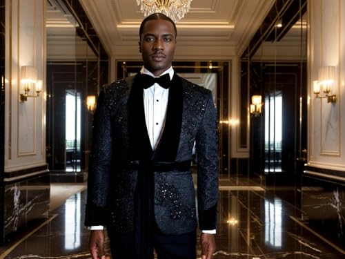 Fabric type: 60% Cotton, 40% PolyesterCare instructions: Dry Clean OnlyOrigin: ImportedStylish Design: This men's blazer features a sleek rhinestone shawl lapel and dual vents for a sophisticated evening look.Formal Attire: Designed as a formal dinner tuxedo jacket, it's perfect for black-tie events, weddings, and other upscale occasions.Premium Construction: Crafted with precision, the blazer boasts a single-breasted design with dual vents and two flap pockets.Comfortable Fit: With its tailored cut, this blazer offers a flattering and comfortable fit suitable for all-night wear.Versatile Piece: While ideal for formal events, this stylish blazer can also be dressed down for a night out or semi-formal gatherings. Perfect for everyday use. High quality materials and excellent craftsmanship ensure long-lasting durability.