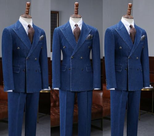 More information about Men's Denim Suit Casual Double Breasted Jacket Two Pieces Banquet Tuxedos Pants Set