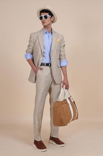SHUZHXLZANGY Men's 2 Piece Linen Suit for Men Slim Fit Wedding Prom Suits Formal Business Casual 1