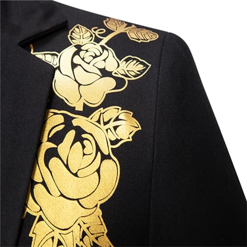 Fabric type: Polyester fiberCare instructions: Machine Wash【Material】:Elevate your style with our men's floral blazer – a perfect blend of sophistication and trendiness. Crafted from high-quality polyester, this slim-fit suit jacket boasts a dazzling print that ensures you stand out at every party, dinner, or wedding. The classic notched lapel and one button design, coupled with the vibrant floral pattern in black, white, red, and blue, make it a fashion statement that commands attention.【Design】:Make a statement with our men's contemporary notched lapel suit jacket. The one button closure and the exquisite gold-toned floral print set the stage for a refined yet contemporary look. With two flap pockets adding a touch of luxury, this blazer is designed for the man who appreciates fine craftsmanship and wants to make a lasting impression.【Occasion】:Versatility meets fashion in our men's floral tuxedo jacket. The slim fit silhouette, combined with the captivating print, allows you to seamlessly transition from formal occasions to casual gatherings. Whether paired with tailored trousers or your favorite jeans, this jacket's timeless design ensures you're always on point.【Enjoy the moment】:Unleash your style with our men's printed tuxedo – the epitome of comfort and flair. Ideal for both indoor and outdoor events, this jacket exudes a sense of confidence. The breathable material and fashionable cut make it suitable for year-round wear, ensuring you're ready for any significant moment in your life.【Fashionable】:Experience a new level of fashion with our men's slim fit printed blazer. Before making your selection, we recommend carefully reviewing our size chart for the perfect fit. If you have any questions or need assistance, please don't hesitate to reach out. We are dedicated to providing you with outstanding service as you embark on a journey of style and elegance. Perfect for everyday use. excellent materials and excellent craftsmanship ensure long-lasting durability.