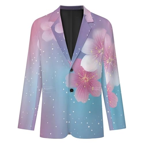 Gradient Cherry Flowers Men's Blazer Printed Button Suit Jacket Slim Sport Coat Blazers 1