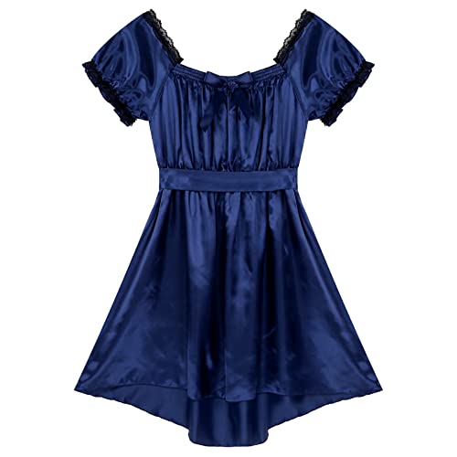 Why Choose Mens tender Satin Short Sleeve Girly Maid Sissy Crossdress Lingerie Dress Nightwear Pajamas?