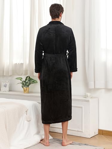 Why Choose RONGTAI Bathrobe for Men, Long Shawl Collar Robe, Plush Fleece Fabric, Side Pockets, comfortable and Cozy Sleepwear (Black, M), Medium?