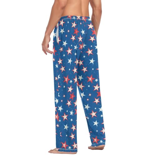 Men's Pajama Pants Red Whit Star Blue Pajama Pants for Men PJs Bottoms Drawstring Pockets Sleep Lounge Pants S 1