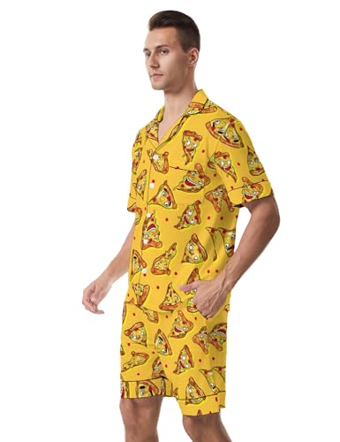 Pajama Sets for Men 2PCS Loungewear Set Short Sleeve Pajamas Button Down Sleepwear Soft Pjs 2
