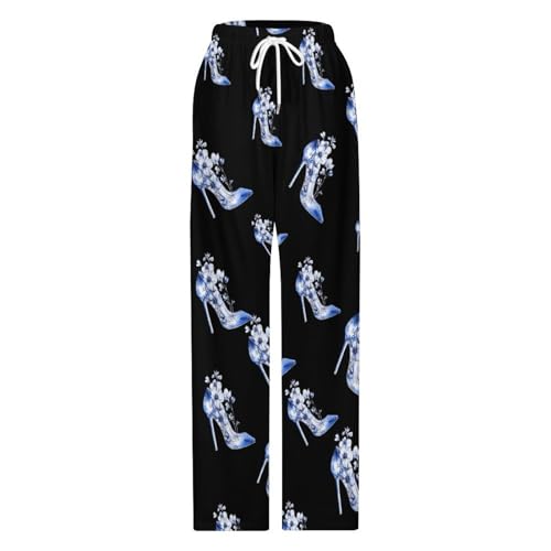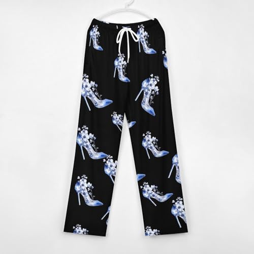 Sexy Blue Heel Flowers Men's Pajama Pants Lightweight Pjs Bottoms Sleep Lounge Pant with Pocket Drawstring 1