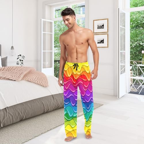 popular ! Rainbow Glaze Mens Pajama Pants Mens Pj Pants Comfy Cotton Pj Long Pant for Men with Pockets Size S-XXL