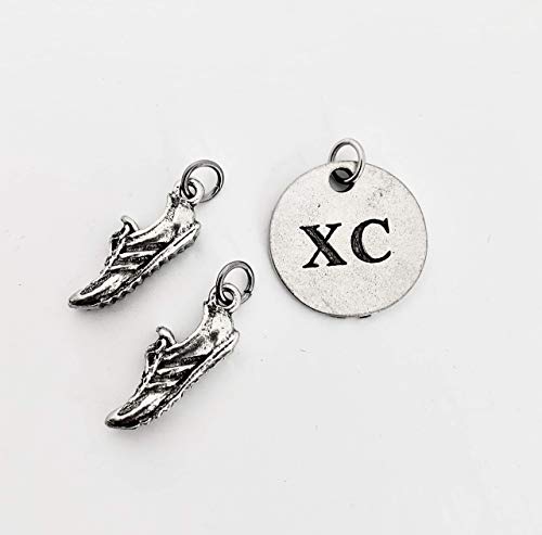 - TWO (2) Pewter Running Shoe Charms AND ONE (1) 7/8 inch Round Pewter XC Pendant