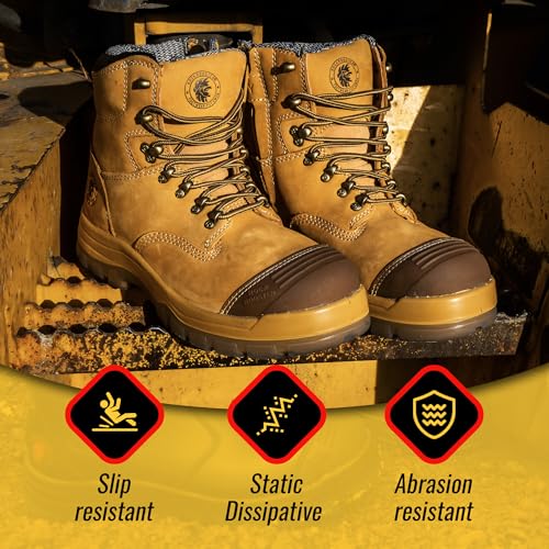 ROCKROOSTER Work Boots for Men,7 inch,Steel Toe,Side Zipper, Leather Shoes,Static Control, Breathable,fast Dry(AK232Z -AK245Z