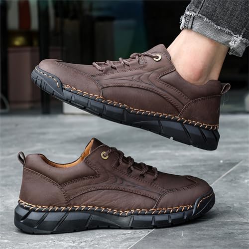 Men's Handmade Genuine Leather Lace Up Casual Ankle Chukka Boots Fashion Lightweight Mid-top Loafers for Walking Driving Hiking 6