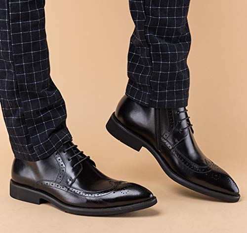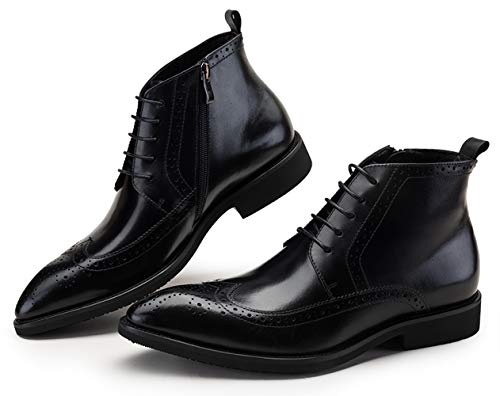 Santimon Men's Brogue Dress Boots Pointed Toe Lace up Ankle Boots Black Oxford Boots 7