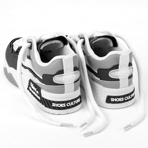 Mens Fashion Lace-Up Sneakers, Comfort Casual Walking Shoes, Faux Leather Platform Chunky Sneakers Tennis Shoes