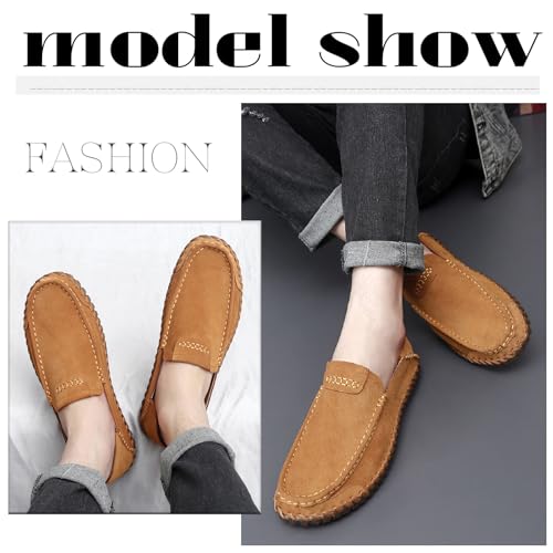 More information about Men's Suede Hand Stitching Penny Loafers Lightweight Breathable Round Toe Slip-On Flat Moccasin Driving Shoes Casual Daily Work Walking Shoes