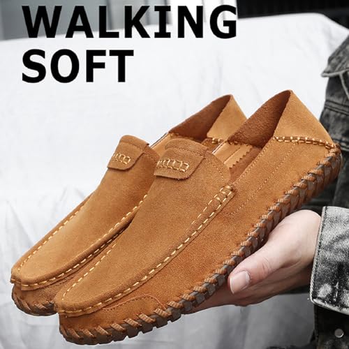Men's Suede Hand Stitching Penny Loafers Lightweight Breathable Round Toe Slip-On Flat Moccasin Driving Shoes Casual Daily Work Walking Shoes 7